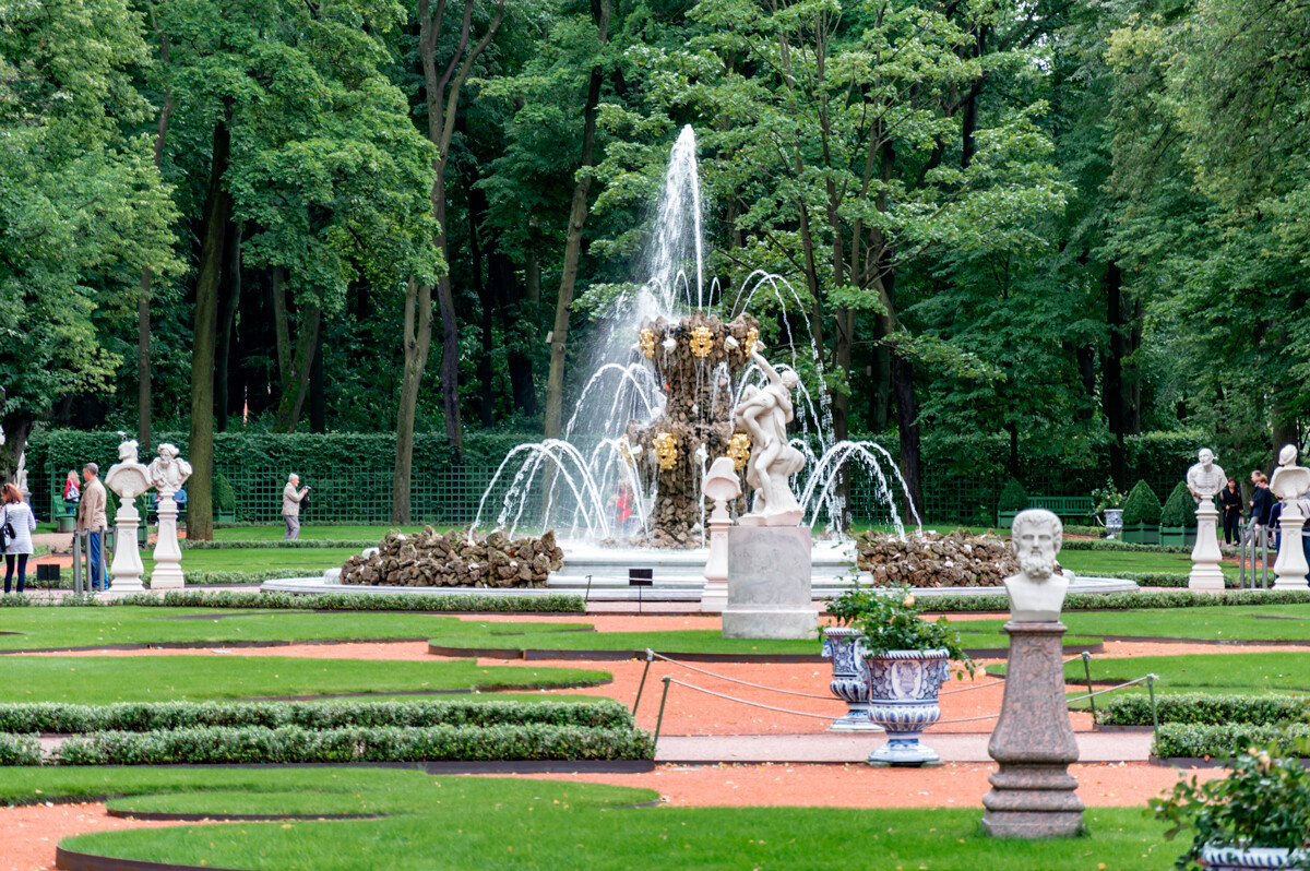 这个花园比邻夏日花园、米哈伊洛夫斯基宫(俄罗斯博物馆)和滴血救世主教堂,公园内有宽阔的巷路和翠绿的池塘。